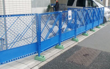 足場一段目に金網を設置し、外部からの侵入を防ぎます。 -